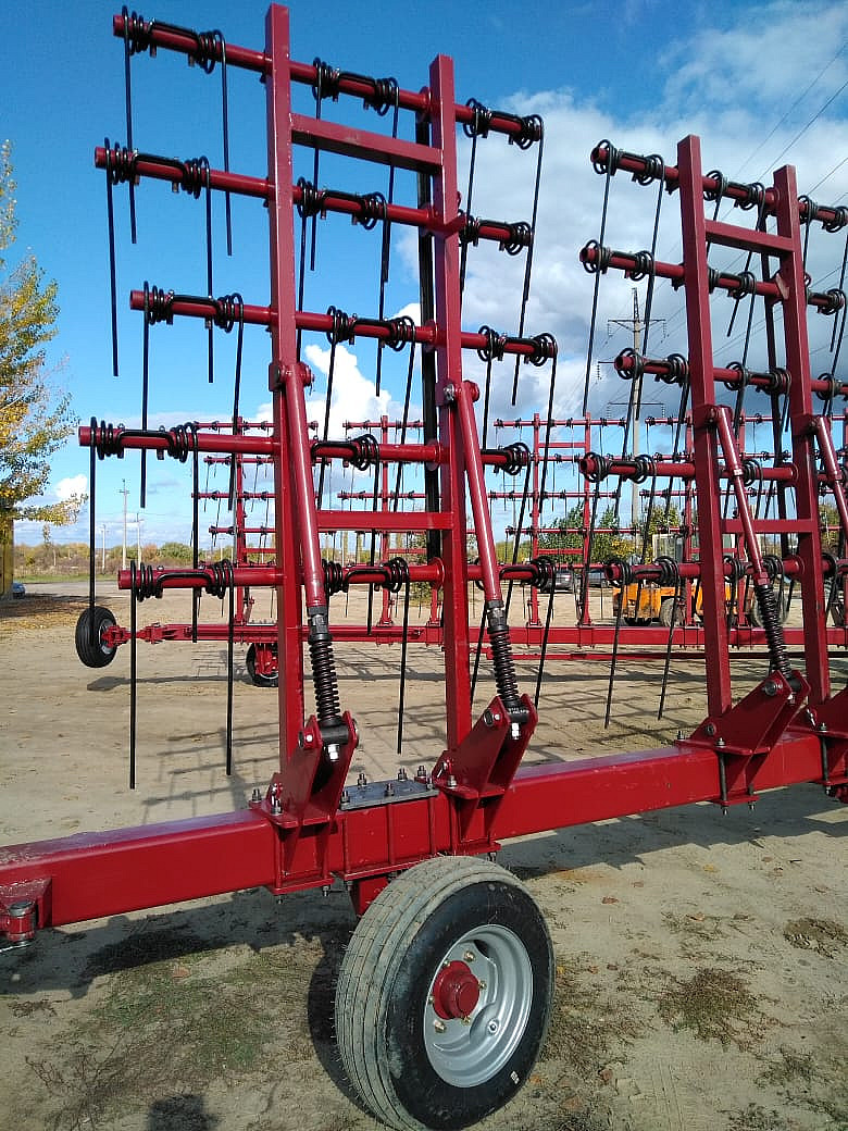 Борона пружинная предназначена для эффективной подготовки почвы. Основная сфера использования – уничтожение сорняков на посевных полях, а также – создание водного баланса в плодородном слое почв грунта и разрушение образовавшейся верхней корки. Трактор проходит с бороной данного вида, как до посевных работ, так и после сбора урожая. Поверхность поля выравнивается. Подходит для всех видов технических и зерновых культур. Борона на один проход выполняет сразу 4 операции, начиная от боронования и рыхления почвы и заканчивая заделкой удобрений.