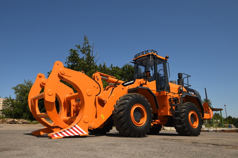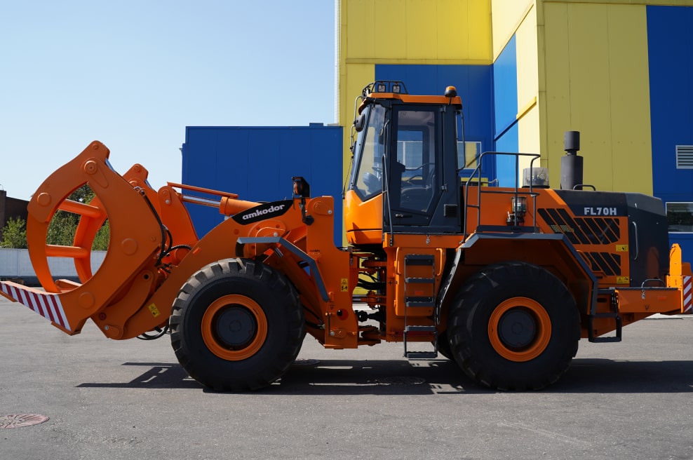Лесопогрузчик АМКОDOR FL70H предназначен для погрузки круглых лесоматериалов на складах лесозаготовительных организаций и площадках лесоперерабатывающих предприятий в транспортные средства и в штабеля, а также разгрузки лесовозного транспорта и разборки штабелей.