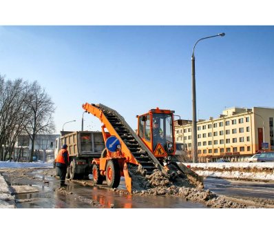 Машина погрузочная универсальная АМКОДОР 37 предназначена для погрузки в транспортные средства свежевыпавшего снега, уплотненного снега и сколотого льда, предварительно собранного в валы и кучи.