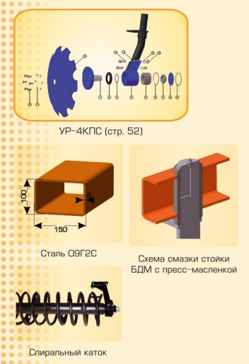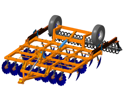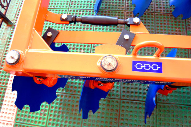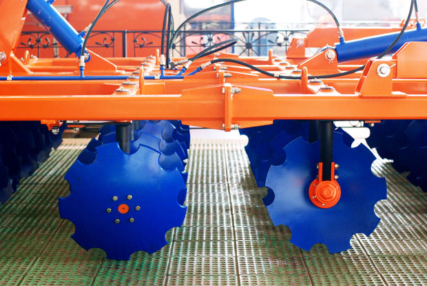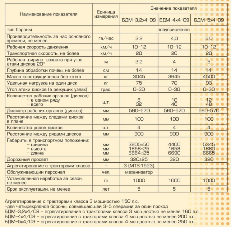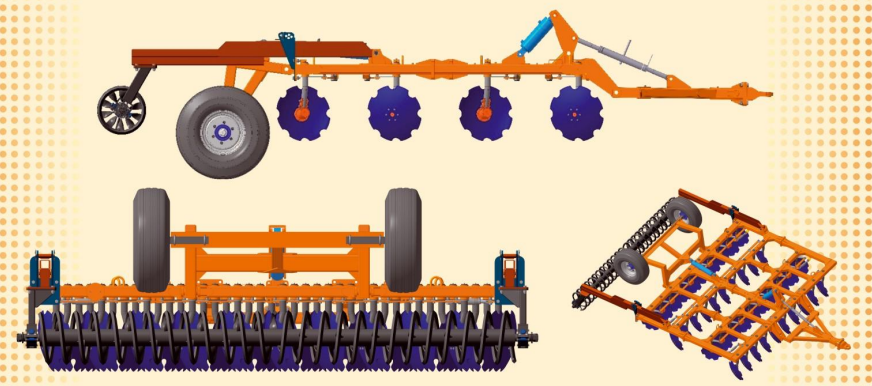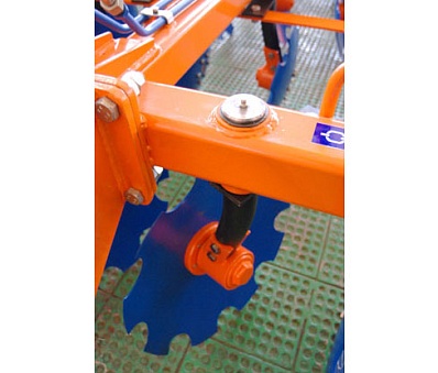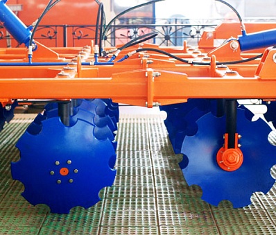Отличительная конструктивная особенность БДМ состоит в том, что каждый диск расположен на индивидуальной оси со смазываемой втулкой и разнесением рядов на 900 мм. Каждый ряд дисков имеет возможность регулировки угла атаки и рабочей ширины захвата диска.