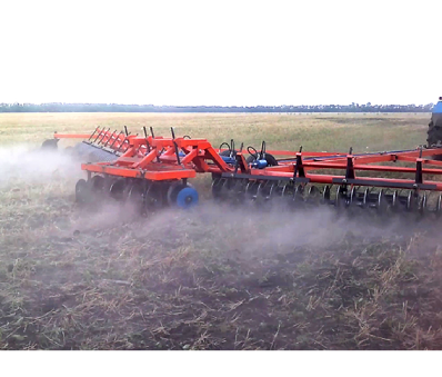 Лущильник работает вразвал от середины орудия. Чем больше угол атаки дисков, тем больше степень рыхления пласта, полнее подрезание растительных остатков и больше глубина обработки почвы.