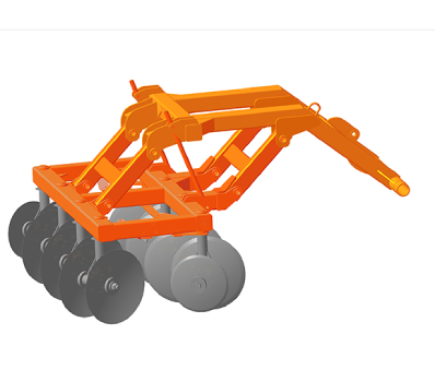С передней частью рамы брусья соединены растяжками. Механизм гидроуправления установлен на раме и брусьях. К брусьям шарнирно присоединяются секции, к которым крепятся дисковые батареи.