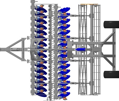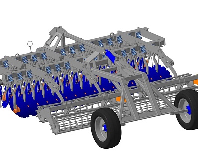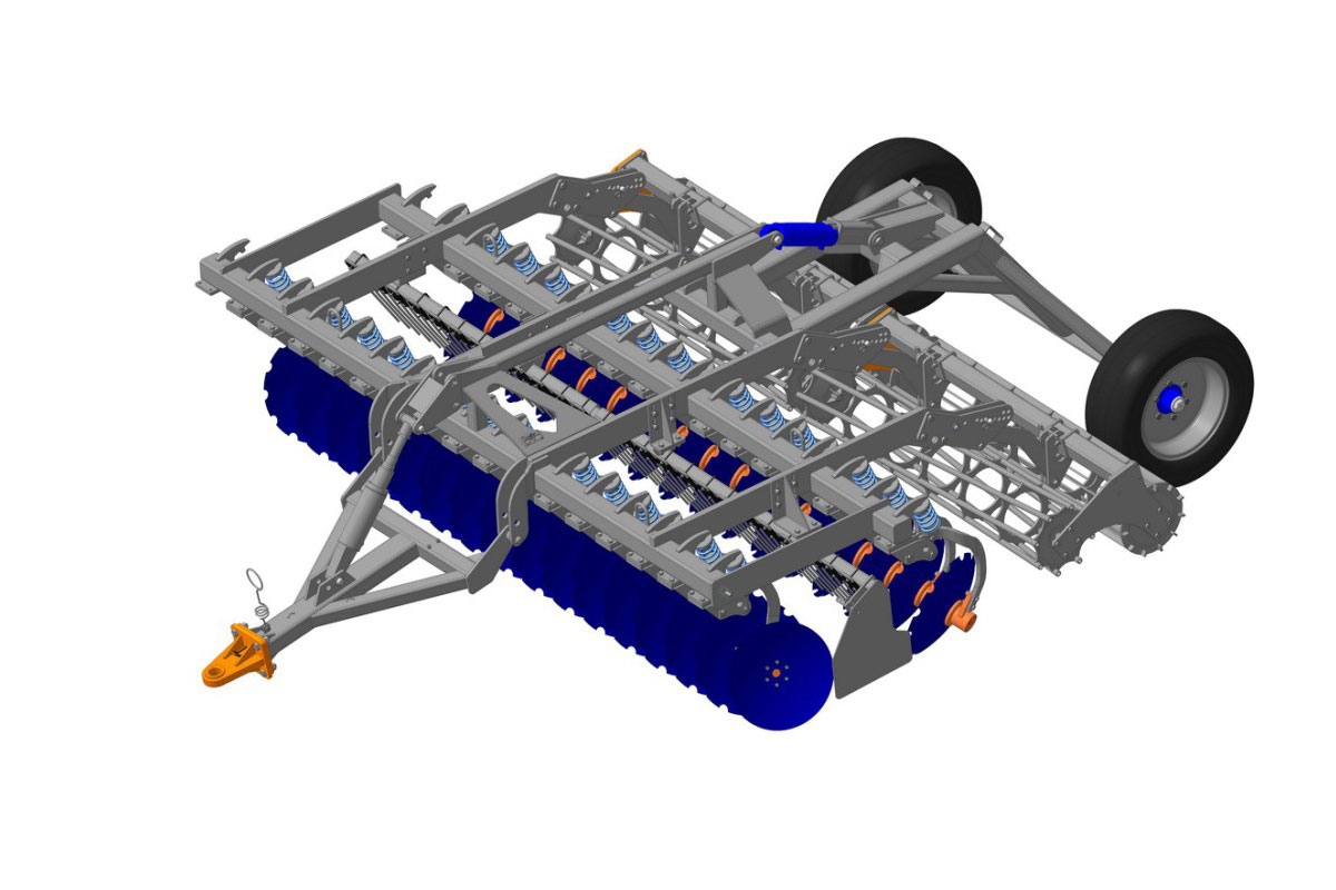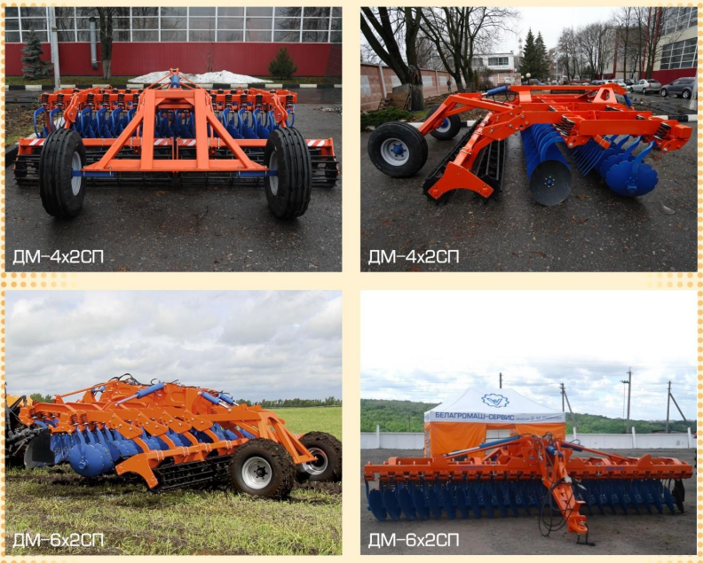 Дисковый мульчировщик  ДМ-4х2СП, ДМ-6х2СП, ДМ-7х2СП, ДМ-8х2СП с 2-х рядным расположением рабочих органов на индивидуальных подпружиненных стойках предназначен для подготовки почвы под посев травянистых и злаковых культур, а так же для уничтожения сорняков и измельчения пожнивных остатков без предварительной вспашки.