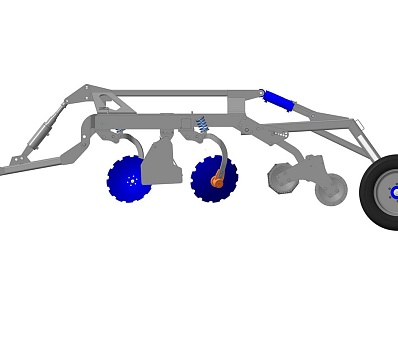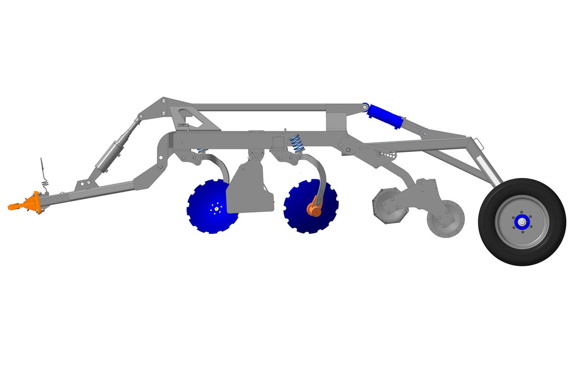 ДМ-4х2СП — Рама мульчировщика является основным несущим элементом конструкции и предназначена для установки на нее ходовой тележки, сцепного устройства, прикатывающих катков, режущих узлов, а также монтажа гидросистемы мульчировщика. Представляет собой сварную конструкцию из продольных брусьев и поперечных труб квадратного (120×120) сечения с кронштейнами для установки сцепного устройства, а также кронштейнами для установки прикатывающих катков и ходовой тележки. С нижней стороны поперечных труб имеются кронштейны для крепления режущих узлов. Мульчировщик также может комплектоваться спиральными катками. Гидравлическая система позволяет комбинированное плавное управление гидроцилиндрами сцепки и ходовой тележки при различных манипуляционных действиях.