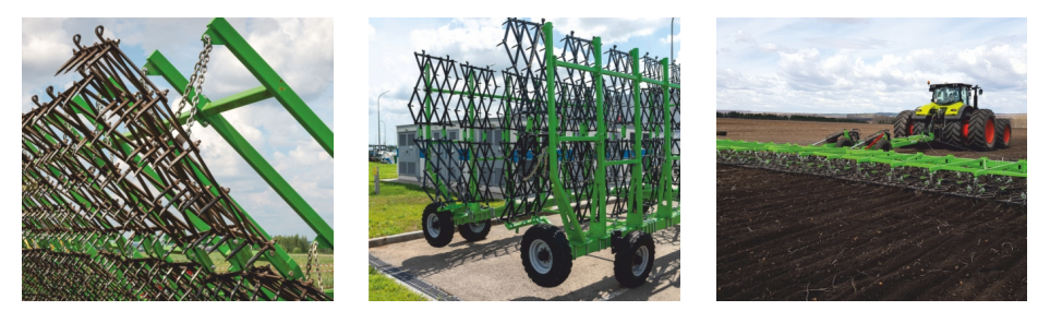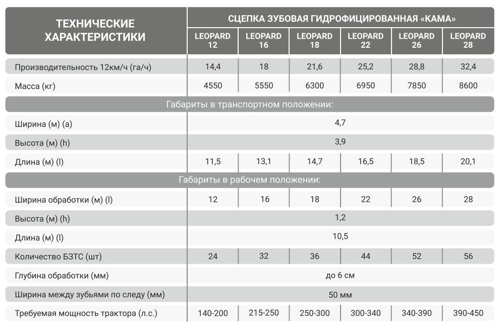 Агрегатируют зубовые бороны посредством двурядных сцепок KAMA LEOPARD 12 с тракторами мощностью от 120 до 180 л.с.