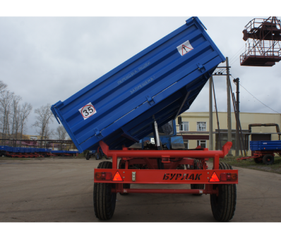 НАЗНАЧЕНИЕ:Самосвальный прицеп 2ПТС-4,5 используется как для транспортировки сельскохозяйственных грузов, так и для перевозки строительных грузов различного назначения. Способен справиться с работой в условиях дорог общей сети, а также в полевых условиях. Прицеп агрегатируется с сельхозтехникой тягового класса 1,4 т, которая оснащена раздельно-агрегатной гидросистемой и имеет тягово-сцепное устройство согласно ГОСТу 2349. Обязательное условие – наличие у колесного трактора выводов для подключения пневматической тормозной системы, разгрузочного механизма и прочего электрооборудования. Разгрузка прицепа 2ПТС-4,5 трёхсторонняя. Новшество модели – улучшенные основные борта прицепа, которые изготовлены из профильного стального листа на прокатном стане. Благодаря этому борта имеют повышенную жесткость и эстетический внешний вид. Обварка стальных бортов выполняется с помощью роботизированного комплекса, что лучшим образом сказывается на качестве сварочных швов. Новый улучшенный замковый механизм бортов позволил сделать запирание бортов более удобным и надежным. Более прочным стал каркас надставных бортов, который теперь изготавливается из труб 60x40x2. Также увеличился объём кузова, что позволяет перевозить грузы большего объема при условии, что не будет превышена грузоподъемность транспортного средства.