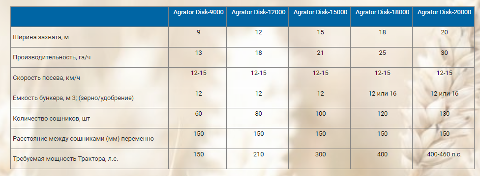 Посевной комплекс с дисковыми сошниками «AGRATOR-DISK» предоставляет хозяйствам совершенно новый уровень производительности и мобильности, удобства и безопасности. Резко сокращается потребность в людских ресурсах, не требуется грузчики и сеяльщики. Для работы достаточно одного тракториста. По сравнению с составным сеялочным агрегатом из СЗ-3,6 аналогичной ширины, производительность «AGRATOR-DISK» выше минимум в два раза. Электронная система контроля «Арыш» отражает все основные параметры работы посевного комплекса: состояние каждого семяпровода, уровень посевного материала и удобрений, скорость, площадь посева и т.д.