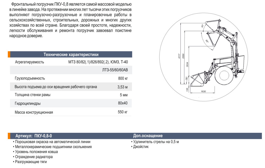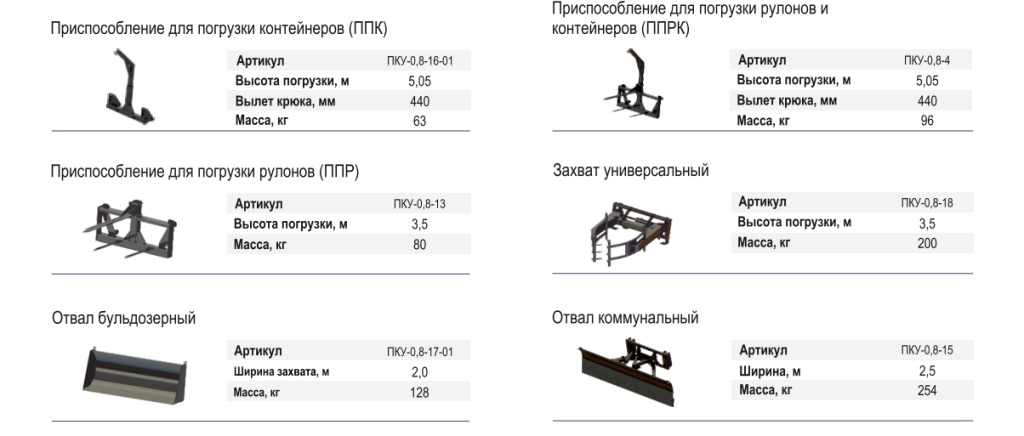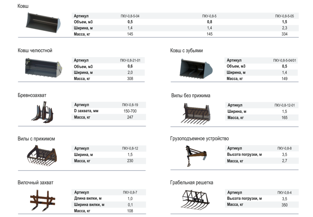 Рабочие органы для Фронтальный погрузчик ПКУ-0,8:
