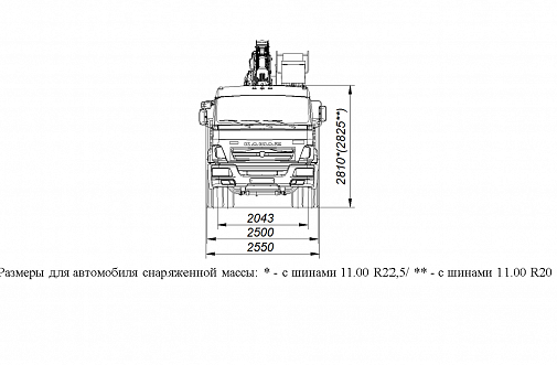 | Высота, мм | с шинами 11.00 R22,5 - 3790; с шинами 11.00 R20 - 3805 |