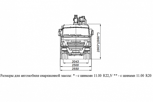 | Высота, мм | с шинами 11.00 R22,5 - 3685; с шинами 11.00 R20 - 3700 |
