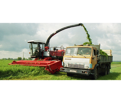 • Силосопровод, приводимый в движение гидромотором, обеспечивает выгрузку измельченной массы на три стороны. Значительный запас высоты силосопровода позволяет без проблем загружать кузова транспортных средств с высокими бортами.