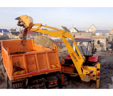 АМКОДОР 702ЕМ – 03 – фронтальное погрузочное оборудование с двухчелюстным ковшом и экскаваторное оборудование с гидравлическим поперечным