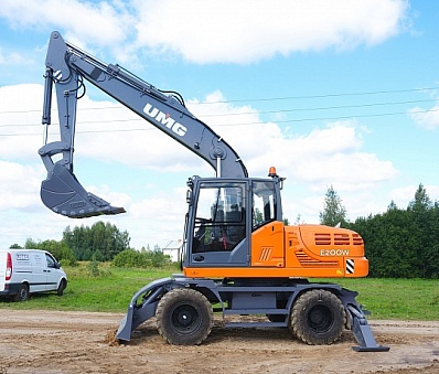 Полноповоротный, одноковшовый, универсальный, гидравлический колесный экскаватор Е200W предназначен для: