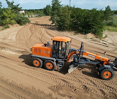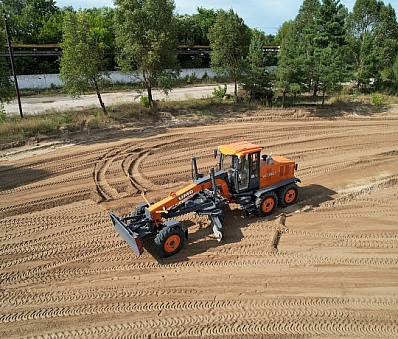 • Полноповоротный грейдерный отвал обеспечивает высокие технологические возможности автогрейдера