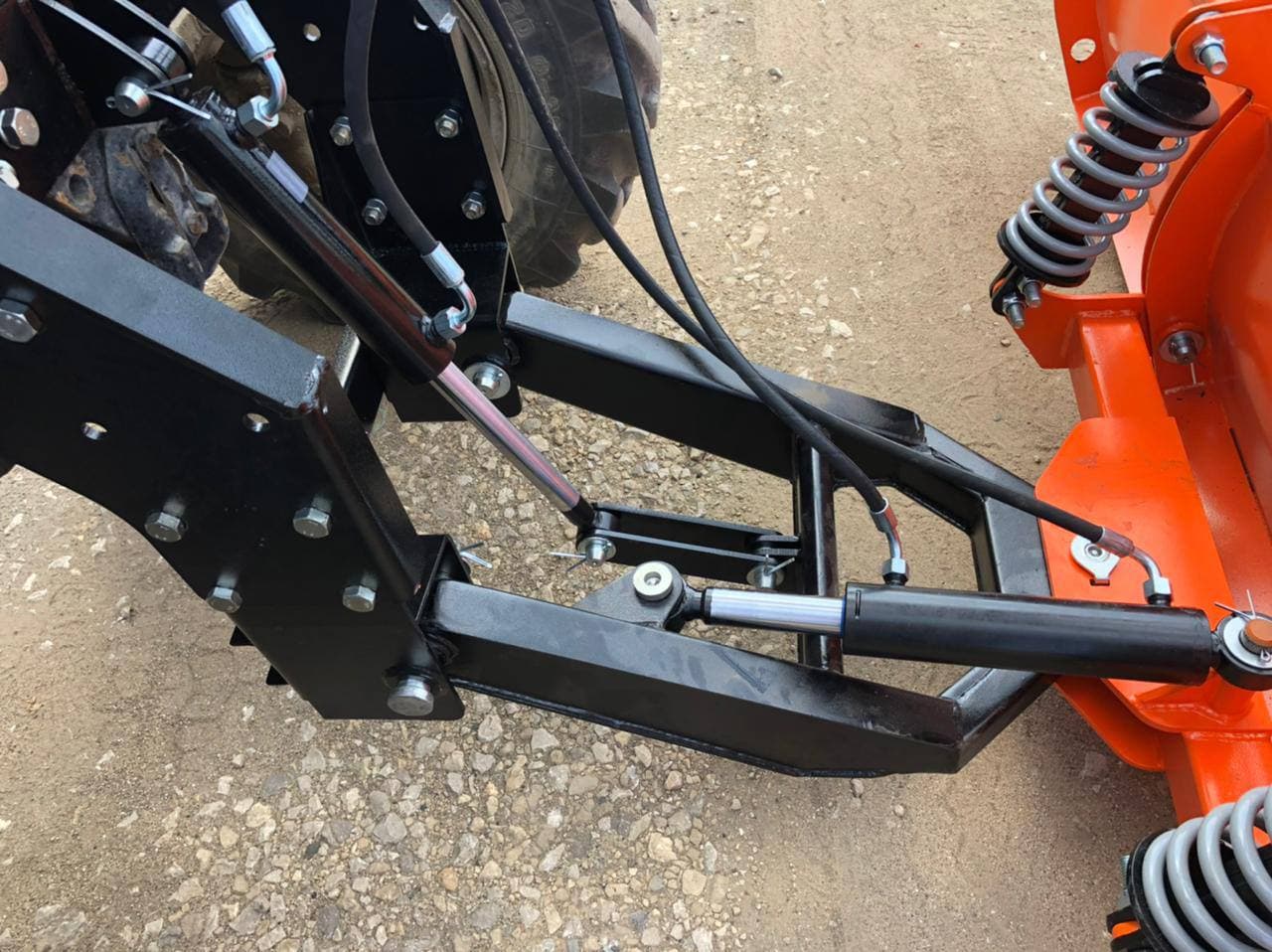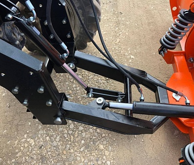 Лопата с оптимизированным радиусом загиба обеспечивает мощный выброс снега в сторону. Плавающая подвеска лопаты позволяет эффективно следовать неровностям поверхности. Подвеска амортизирует удары, гасит вибрации, защищает шасси от повреждения при переезде через препятствия.