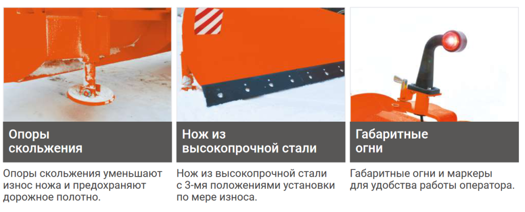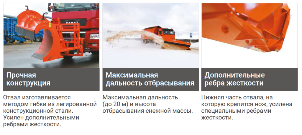 • стальной грейдерный нож, усиленный ребрами жесткости, позволяет использовать отвал для очистки дороги от плотного снега и наледи;