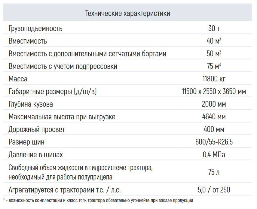 Полуприцеп ПСП-30 «Гигант» предназначен для перевозки различных сыпучих и твердых грузов (зерно, корнеплоды, зеленая масса, силос, сенаж, зерносенаж, навоз, торф, удобрения, опилки, снег и пр.) по всем видам дорог и в полевых условиях. Имеет самую большую грузоподъемность в классе широко известных полуприцепов серии ПСП «Гигант». Является универсальной техникой и может эксплуатироваться круглогодично.