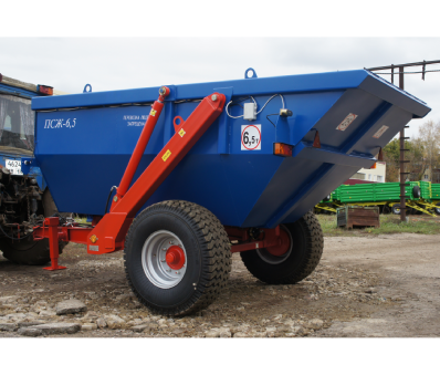 НАЗНАЧЕНИЕ:Полуприцеп тракторный самосвальный ПТСЖ-6,5 предназначен для перевозки и выгрузки назад любых жидких, полужидких и сыпучих сельскохозяйственных и строительных грузов по дорогам общей сети и в полевых условиях. Полуприцеп является универсальным, всесезонным транспортным средством и кроме традиционых сельскохозяйственных грузов может транспортировать и разгружать жидкие и полужидкие удобрения, строительные растворы и асфальтобетонные смеси. Полуприцеп агрегатируется с колёсными тракторами тягового класса 1,4т...2.0тс.