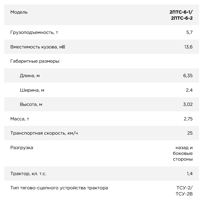 Прицеп самосвальный предназначен для транспортировки различных сельскохозяйственных грузов, зерна, корнеплодов, органических удобрений, строительных материалов и других сыпучих грузов с объемной массой 0,8-1,6 т/куб.м с выгрузкой назад и на две боковые стороны.