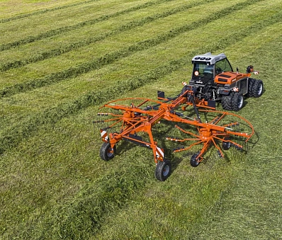 Они оснащены граблинами с двумя изгибами в гипертангенциальном положении, которые обеспечивает высокое качество валкования и формирование идеальных валков для быстрой сушки массы. Эти валкообразователи обладают всеми функциями, необходимыми для осуществления высококлассной кормозаготовки, имея при этом приемлемую стоимость и высокую маневренность.