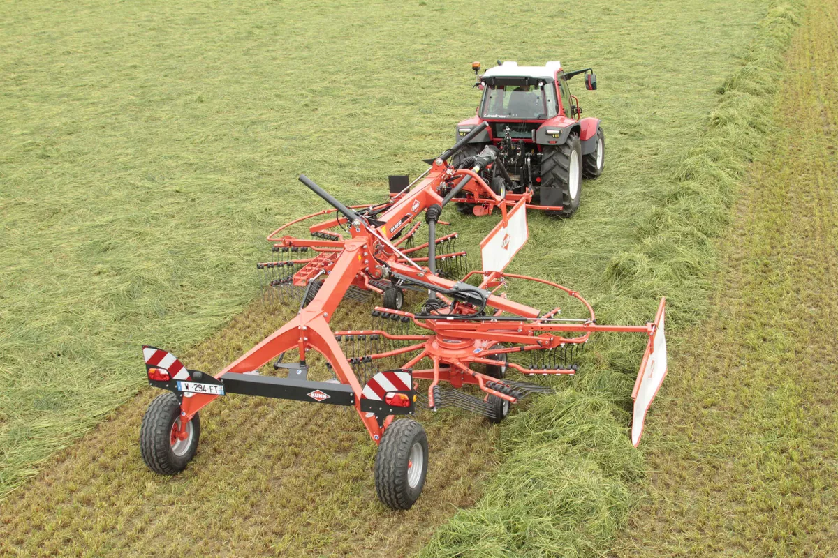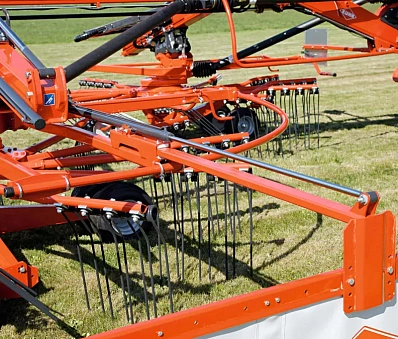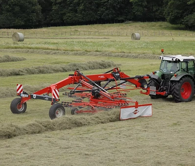 С помощью этих валковообразователей с боковой укладкой вы можете контролировать объем растительной массы в валке: образование отдельных валков или совмещение двух проходов для формирования одного валка. Вы также можете регулировать рабочую ширину для получения оптимального размера валка. Результат: оптимизация производительности для одного гектара при последующей работе пресс-подборщиков и другой уборочной техники. Данная модель позволяет осуществлять укладку в один или два отдельных валка. Вы оцените ее универсальность при переворачивании двух валков для более быстрой сушки и более эффективного валкования в ночное время. При укладке двух валков процесс сушки тяжелых культур также проходит быстрее.