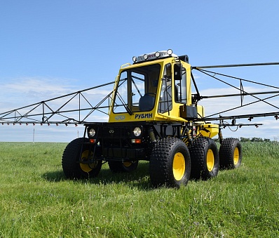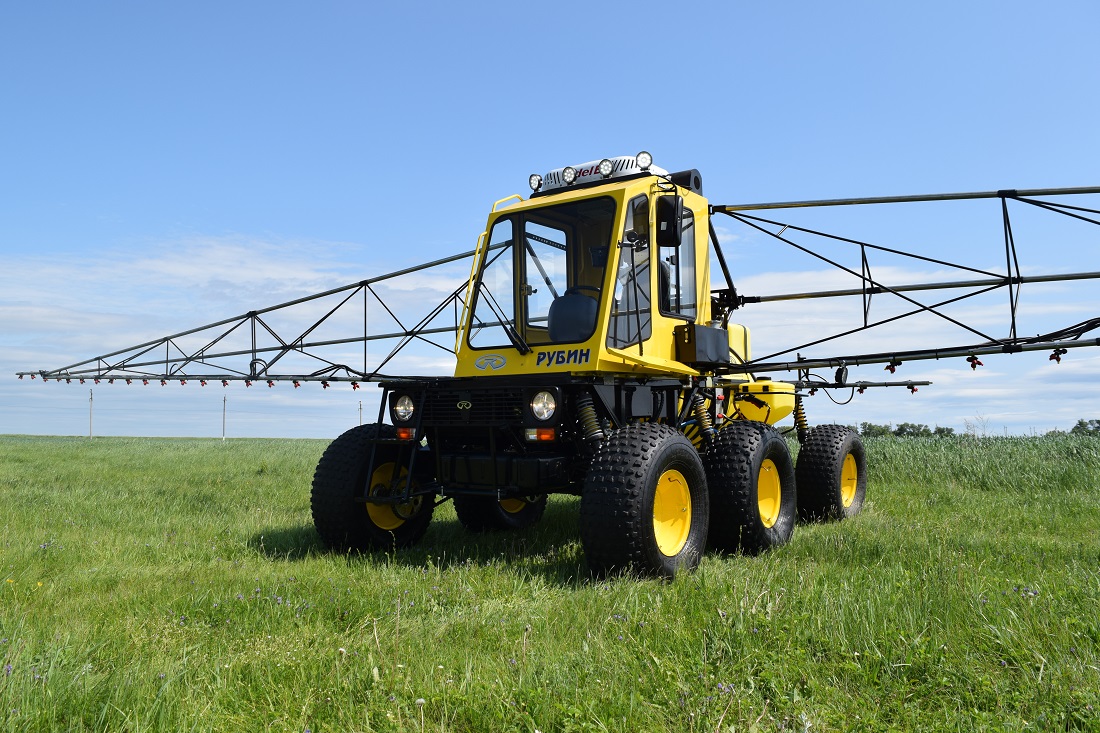 Самоходный опрыскиватель «Рубин» на шинах сверхнизкого, низкого давления, а так же узкопрофильной резине для междурядной обработки блестящий результат многолетних исследований и практических работ в агрохимической области отечественного сельскохозяйственного комплекса. Этот уникальный, по своей сути, комплекс, специализирующийся на химической обработке полей и внесении удобрений отвечает всем требованиям и задачам, которые появились с внедрением новых инновационных технологий в земледелии.