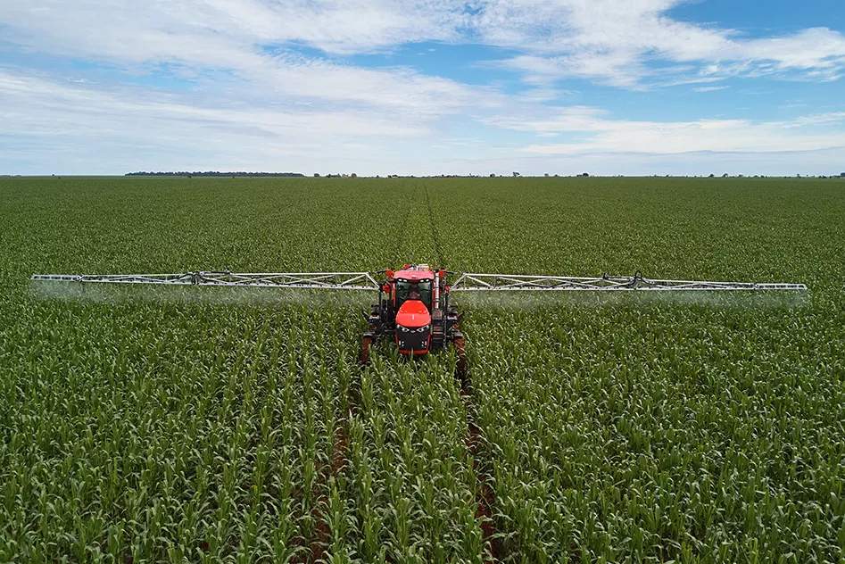 Передняя лестница самоходного опрыскивателя с гидравлическим приводом обеспечивает комфорт и удобство для оператора: она поднимается или опускается простым нажатием на педаль. Химический эдуктор, в свою очередь, обладает вместимостью 30 литров и имеет встроенную ручку для подъема. Он изготовлен из полиэтилена и оснащен системой всасывания Вентури с дренажным клапаном, что позволило уменьшить габаритные размеры. Кроме того, профиль эдуктора и форма поверхности оптимизированы для упрощения промывки и предотвращения застоя химикатов. Он также оборудован вращающейся форсункой для очистки баков с химикатами и специальной смесительной форсункой, которая подходит как для гранулированных, так и для порошковых продуктов.