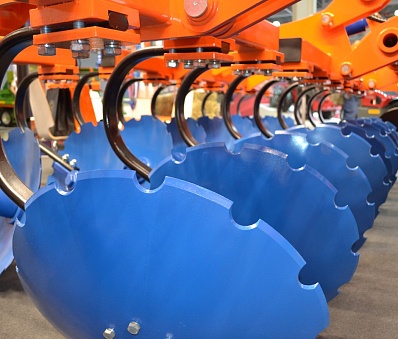 Первая зона обработки представляет собой двухрядную дисковую борону с режущими узлами на пружинной С-образной стойке с диаметром диска 610 мм. Глубина обработки данными узлами составляет до 15 мм, что позволяет произвести полное измельчение пожнивных остатков и перемешивание их с почвой. Пружинная С-образная стойка за счет вибрирующих движений обеспечивает полное перекрытие зоны обработки.