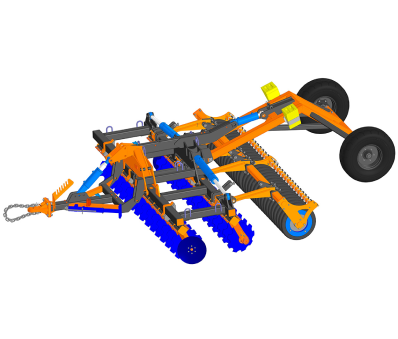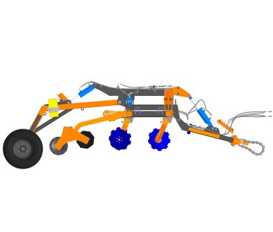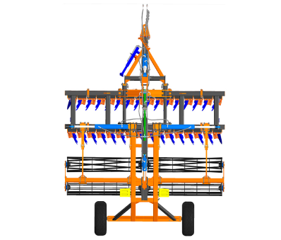 Резиновые или сдвоенные (трубчато-пластинчатые) катки обеспечивают точность регулировки глубины обработки до 1 см с одновременным выравниванием и прикатыванием почвы. Гидравлическая система позволяет комбинированное плавное управление гидроцилиндрами подъема и опускания боковых рам, сцепки и ходовой тележки при различных манипуляционных действиях.