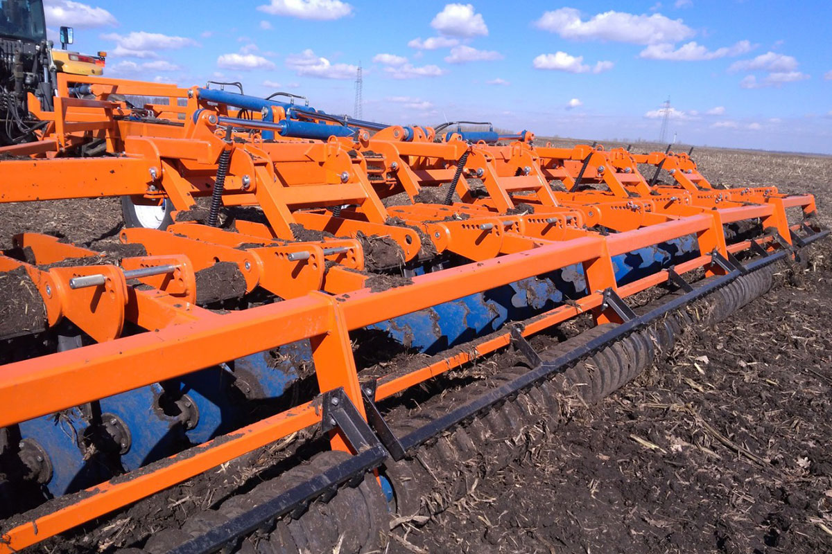 Нестандартное расположение каждого диска на индивидуальной стойке способствует улучшению агротехнических показателей обработки почвы, а также снижению тягового усилия трактора и ГСМ. Установка дисков на индивидуальных стойках исключает забивание междисковых пространств растительными остатками и отпадает необходимость применения в конструкции чистиков. Диски благодаря такому креплению двигаются стабильно в почве без бокового отклонения. Еще одно преимущество такого крепления – надежная защита от перегрузок.