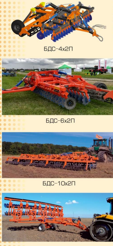 Каждый ряд дисков имеет возможность регулировки смещения дисков в рядах. Отсутствие в конструкции изделия дисковых батарей с единой осью позволяет БДС работать во влажную погоду на полях с большим количеством пожнивных остатков толстостебельных культур, а также на залежных землях с сорной растительностью, при этом исключается наматывание на ось диска растительных остатков и плотное забивание меж дискового пространства. Отпадает необходимость применения в конструкции чистиков, так как в процессе работы происходит самоочищение диска.