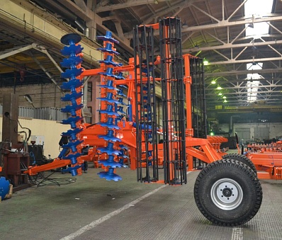 Борона дисковая складная с 2-х рядным расположением рабочих органов на индивидуальных стойках с пружинными резиновыми элементами (эластомерами) предназначена для подготовки почвы под посев травянистых и злаковых культур, а также для уничтожения сорняков и измельчения пожнивных остатков без предварительной вспашки.