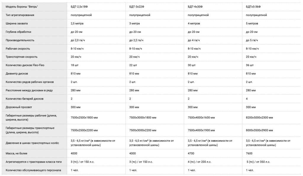 - БДТ-2,5-18Ф «Вепрь» с шириной захвата 2,5 метра