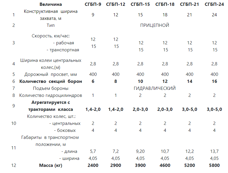 Ширина захвата: СГБП-9, СГБП-12, СГБП-15, СГБП-18, СГБП-21,