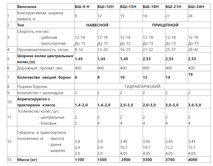 Конструкция бороны  обеспечивает  жесткое крепление  секций борон к брусьям центральной и боковых рам, благодаря  чему обеспечивается равномерность  и регулируемость  заглубления  борон и исключает из  «набегание» друг на друга как в рабочем, так и в транспортном положениях.