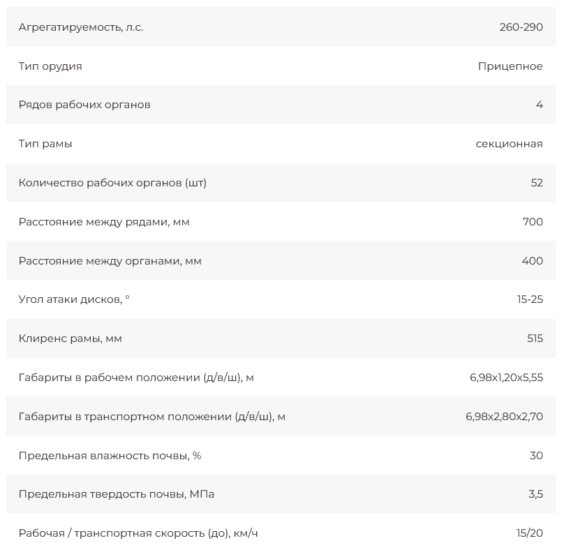 Орудие обеспечивает сплошную обработку по всей ширине захвата.
