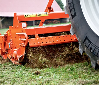 Рабочее положение ножей на роторе CULTITILLER обеспечивает эффект подъема и срезания. Ножи с левым и правым изгибом обеспечивают хорошее выравнивание благодаря боковому отбрасыванию почвы. Ротор CULTITILLER удобен при распашке или для неглубоких работ для минимального фрезования, но также эффективен на каменистой поверхности или при необходимости максимальной заделки растительных остатков.