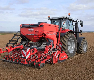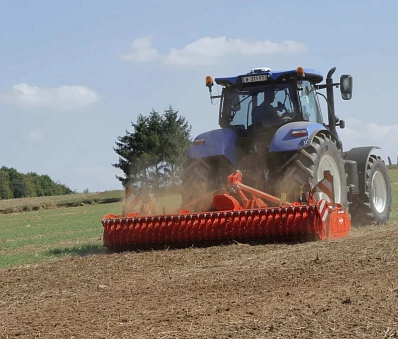 В комбинации с сеялкой вертикальные фрезы серии HR 1020-1030-1040 не влияют на глубину сева. Навесные компоненты сеялки устанавливаются непосредственно на раму катка, чтобы машина располагалась ближе к трактору. Фрезы спроектированы для работы с пневматическими или механическими сеялками.