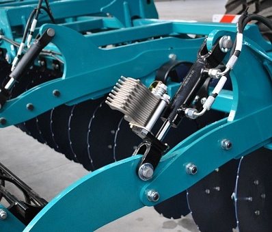 Регулировка глубины обработки осуществляется с помощью клипс, расположенных на штоках гидроцилиндров. Это позволяет удобно и быстро настроить агрегат на необходимую глубину.