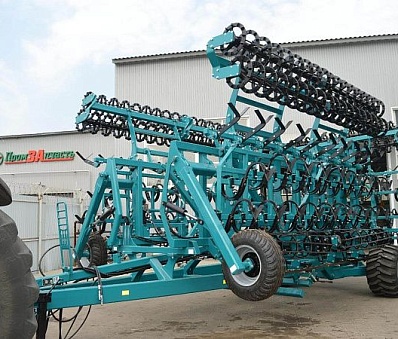 Четыре ряда пружинных S-образных стоек шириной лапы 200 мм, гарантирует качественную обработку полей весной. Отсутствие вертикального угла атаки уменьшает нагрузку на трактор, и позволяет сохранить влажные слои почвы, что положительно сказывается на качестве и скорости всходов. Перекрытие 60 мм.